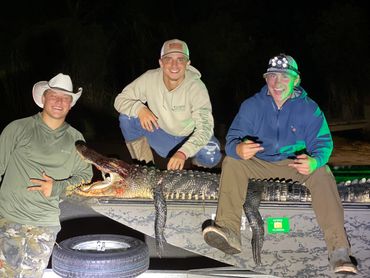 Spotlights are used to scan our local rivers & bayous for gators and the lack of light creates an eerie excitement to the gator hunt. There is something about the dark waters and what lurks beneath that make this hunt exciting and a little unnerving at the same time. Our experienced guides will help you every step of the way in harvesting your gator.